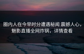 圈内人在今早时分遭遇秘闻 震撼人心,魅影直播全网炸锅,详情查看 今天早晨,一则震撼人心的消息引发了圈...