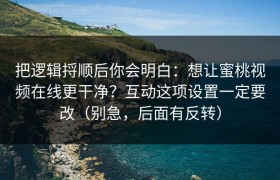 把逻辑捋顺后你会明白:想让蜜桃视频在线更干净?互动这项设置一定要改(别急,后面有反转)