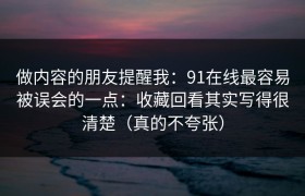 做内容的朋友提醒我:91在线最容易被误会的一点:收藏回看其实写得很清楚(真的不夸张) 很多人一听到“...
