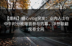 【爆料】糖心vlog突发:圈内人在昨晚被曝曾参与猛料,出乎意料席卷全网