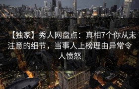 【独家】秀人网盘点:真相7个你从未注意的细节,当事人上榜理由异常令人愤怒